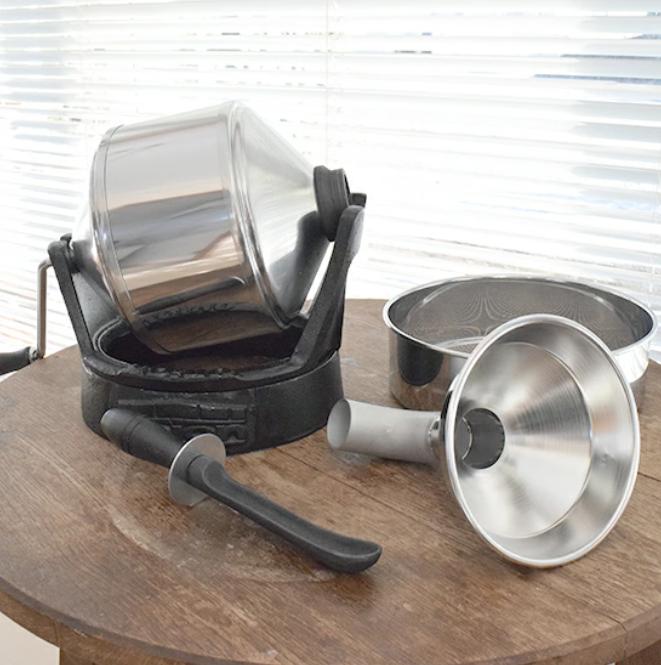 持ち運び可能で、個人で手軽に焙煎できる手動ロースターです。 自家焙煎だから、胃に負担のかかりにくい焙煎直後のコーヒーを楽しむこともできます。一度に多めに焙煎して、焙煎直後の味と、作り置いて1~2日目の味を比べてみるという楽しみ方も。焙煎中に漂う香りを楽しむというのも、自家焙煎ならではの至福です。